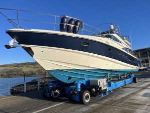 Fairlie Quay has one of the largest boat lifts in Scotland, a WISE 80t travel hoist capable of lifting vessels up to 30m LOA & 7m Beam plus a 45-ton ABI self propelled boat & cradle trailer. Complimenting the yard we also have a 30t mobile crane, WISE 12t cradle shifter and a 2.2t forklift. Purpose built Hoist Pier; 25m long & 7.1m breadth, 25m Heavy duty pontoon with Gas and Fresh water available.
